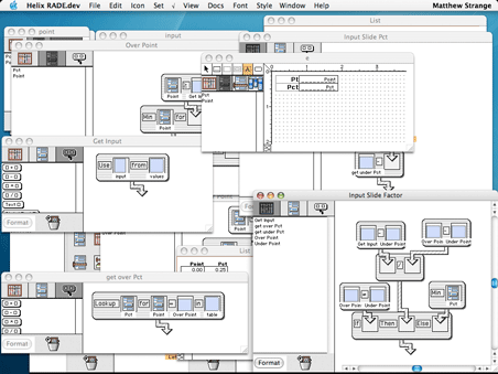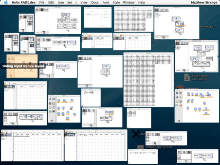 Not a pretty sight, we admit. And even though we added that nifty Windows menu to Helix last winter, one of the best new features in Panther is Exposé, and if you have ever struggled with Helix Design Mode's propensity to generate lots of open windows, you are probably wondering if Helix will take advantage of Exposé. Wonder no more...