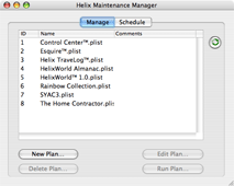 Helix Maintenance Manager is not fully compatible with macOS 10.6. Previously created Plans run without error, but attempting to create new ones results in an error. See this technote for assistance creating a Plan for use under macOS 10.6. Helix Maintenance Manager is not compatible with macOS 10.7 or later. Actually, HMM is compatible, but it relies on Helix Utility and Update Collection 6.0.x, which are PowerPC-only applications that do not run in macOS 10.7 or later. Helix Maintenance Manager 1.0.5 is compatible with macOS 10.3–10.5 and Helix 5.3–6.1. |